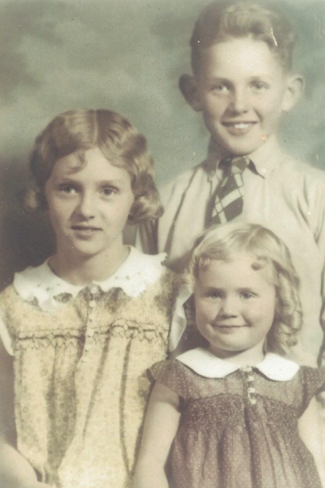 Circa 1935 – Mom (on left) and siblings Bud and Ardell.